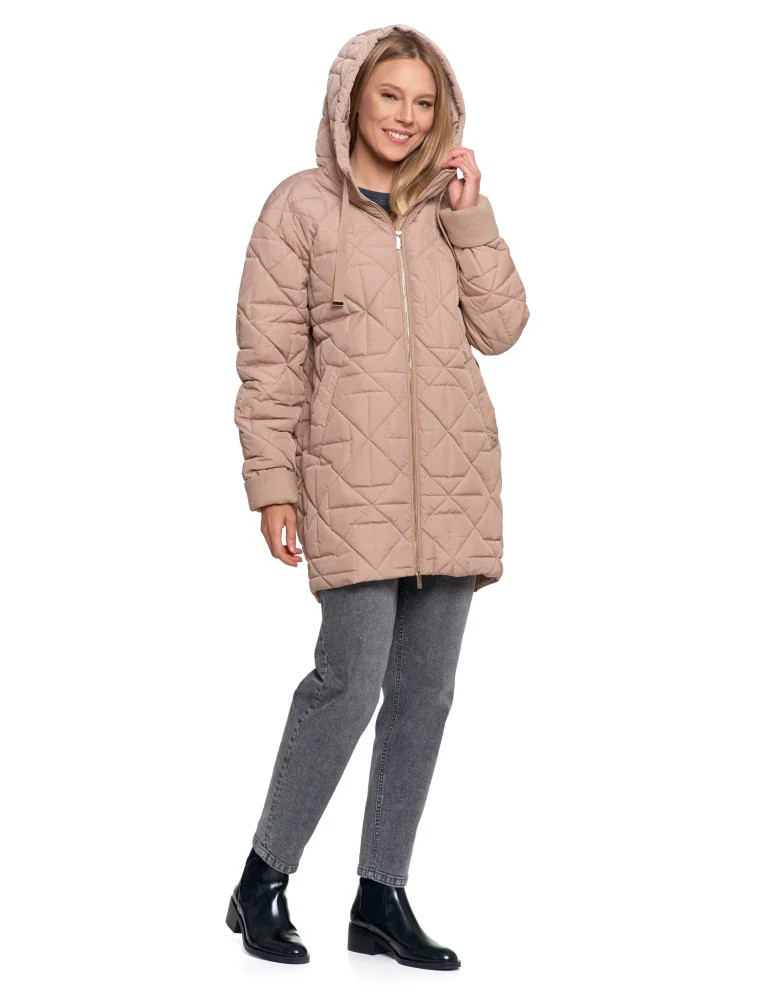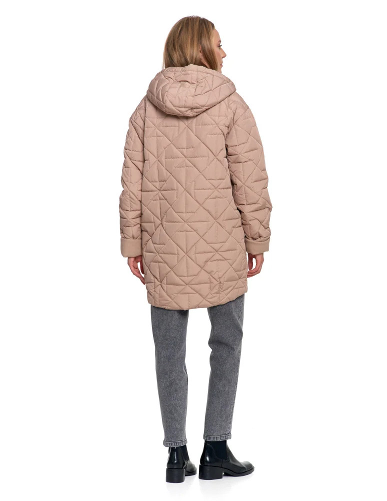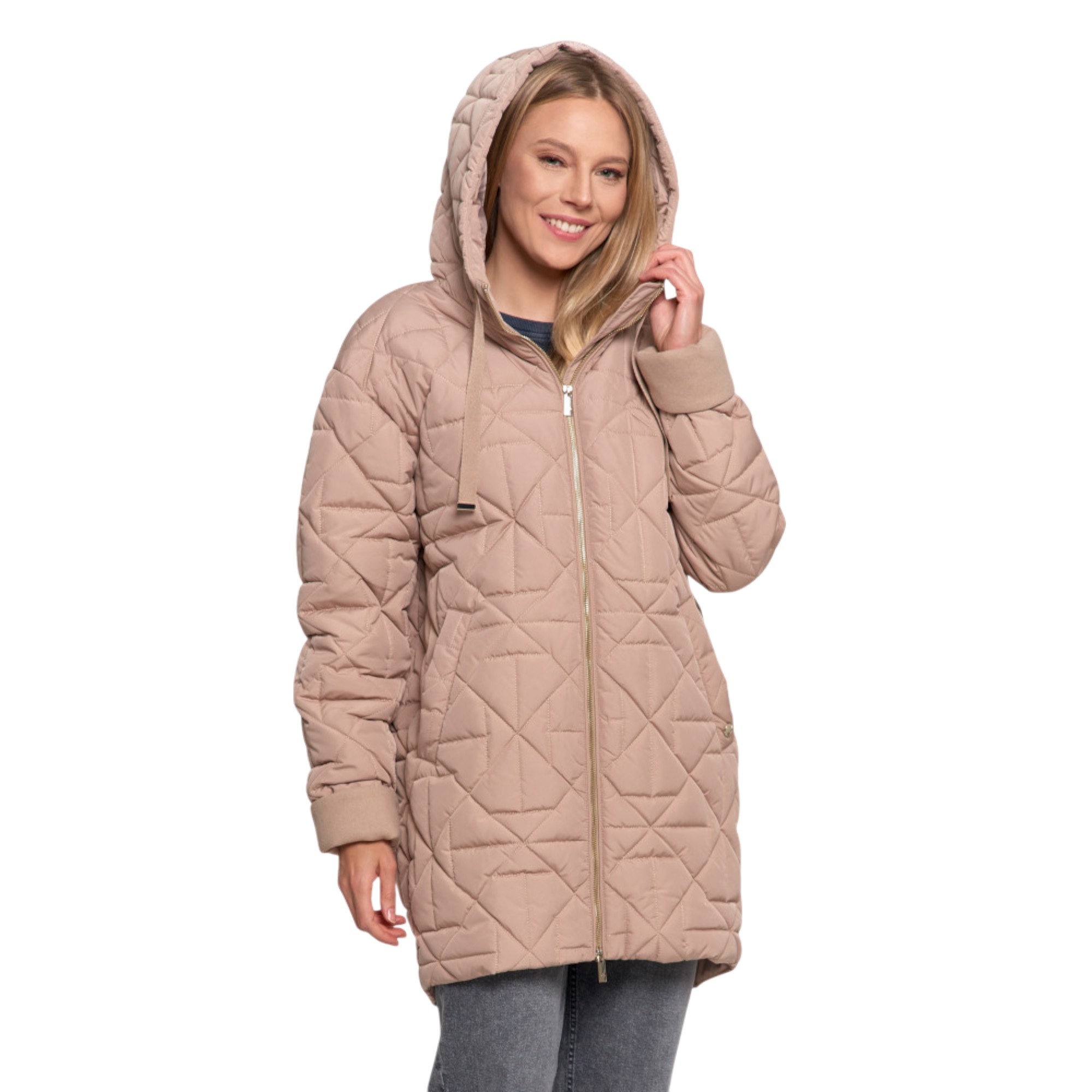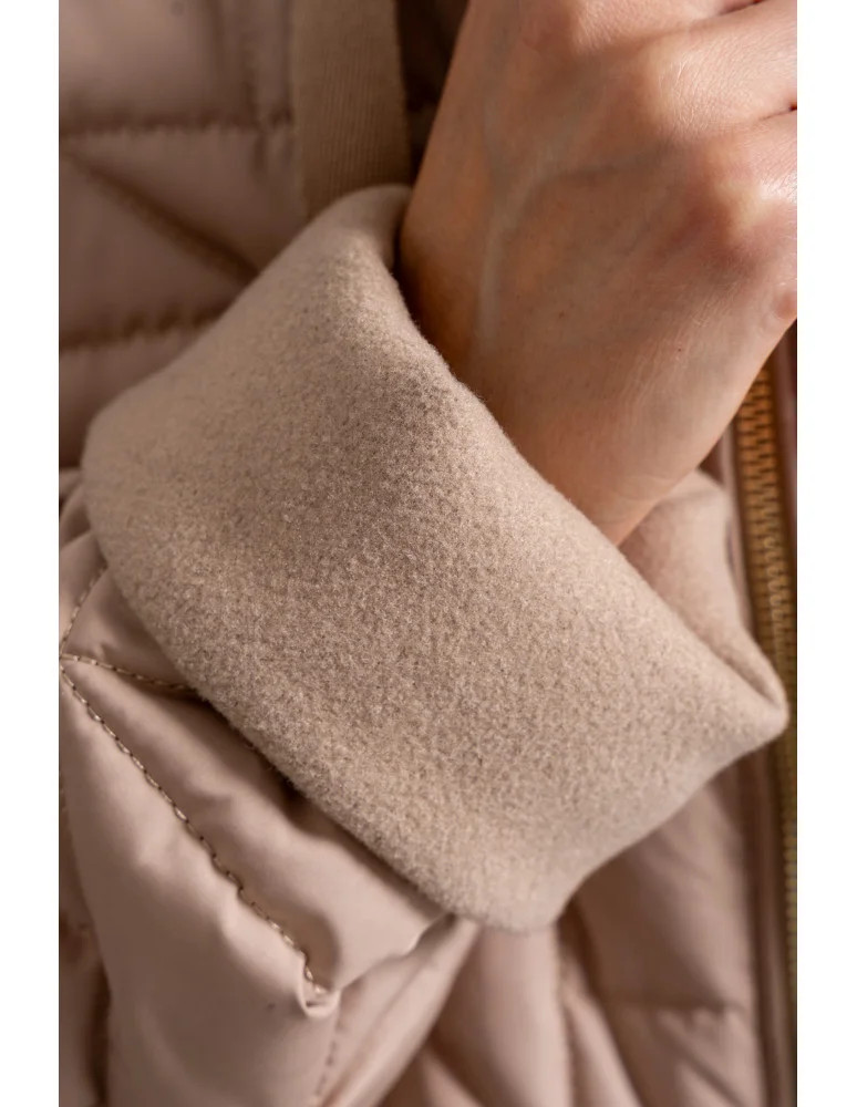 BEŻOWA kurtka DAMSKA pikowana,mankiety z polaru kaptur dłuższa MORAJ
