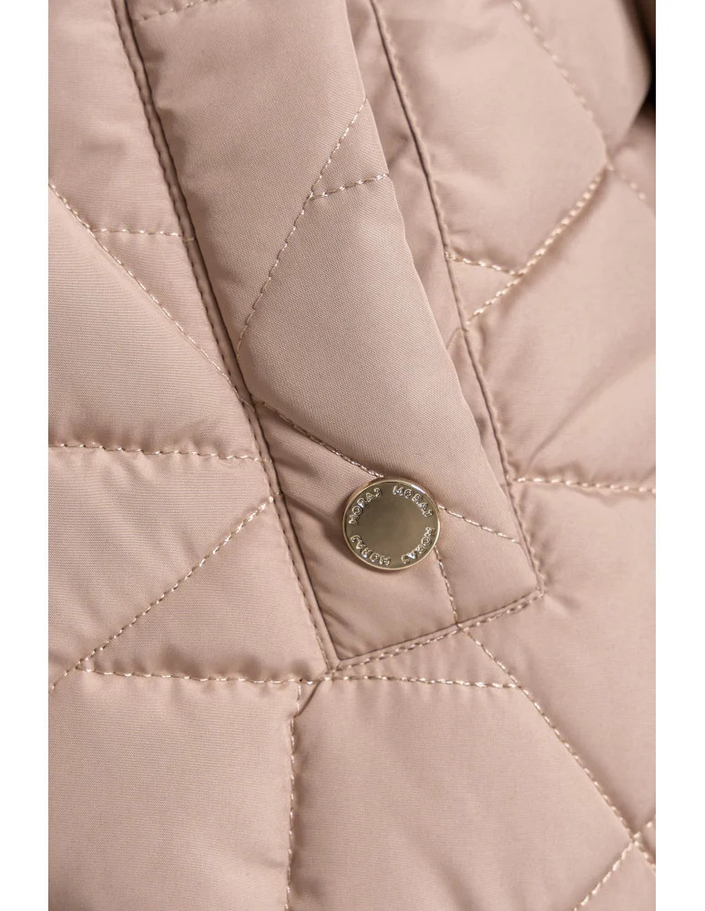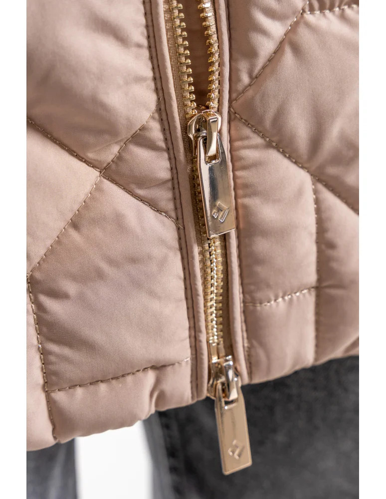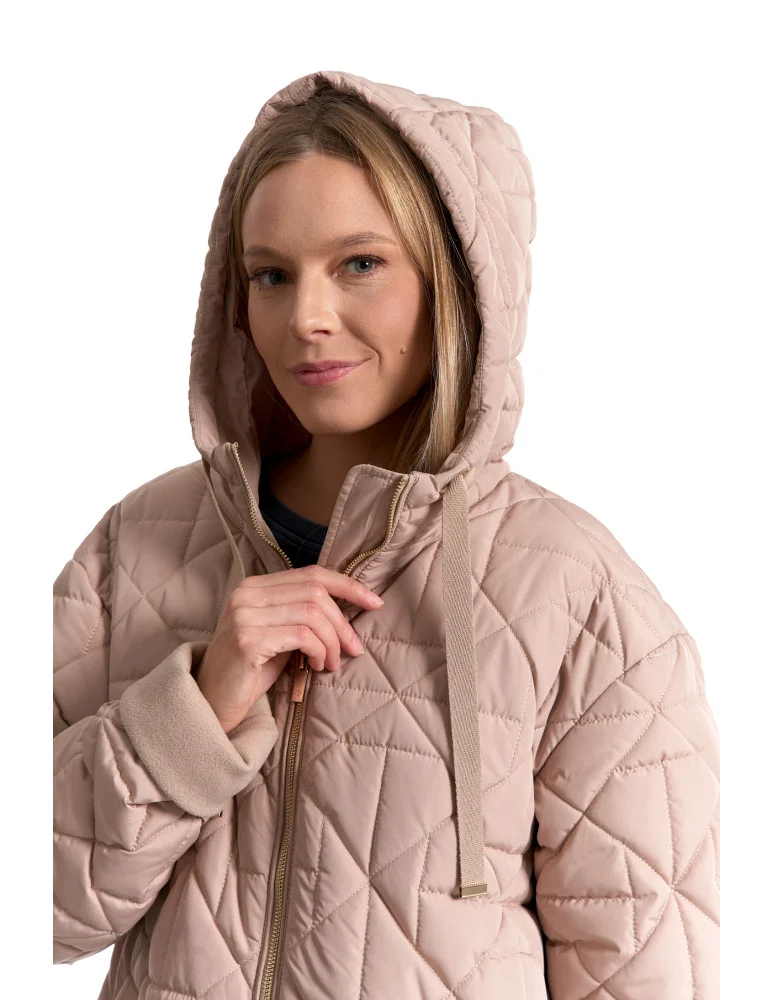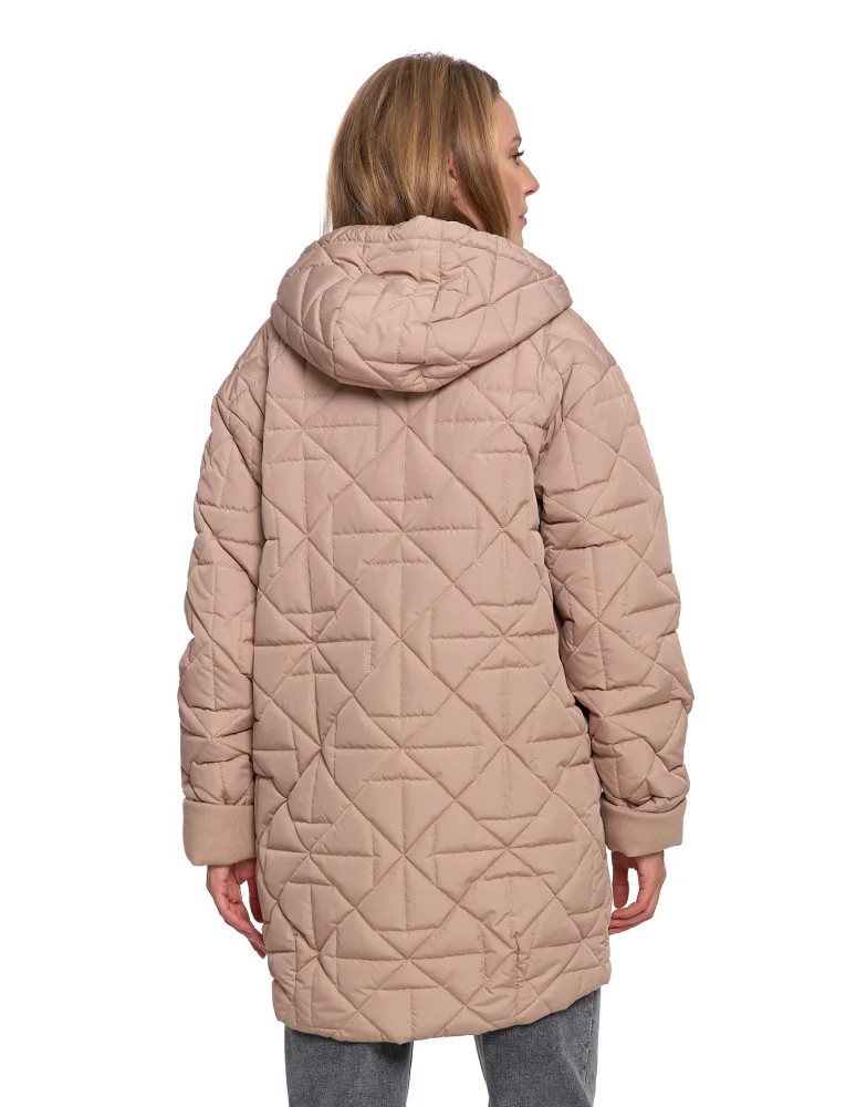 BEŻOWA kurtka DAMSKA pikowana,mankiety z polaru kaptur dłuższa MORAJ