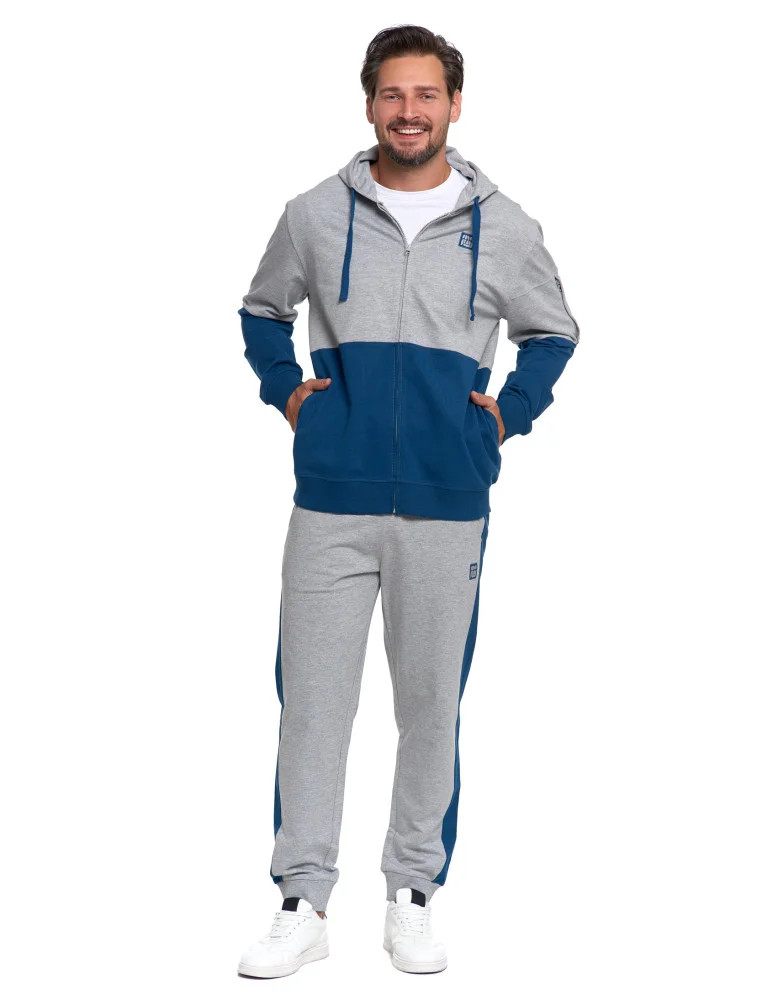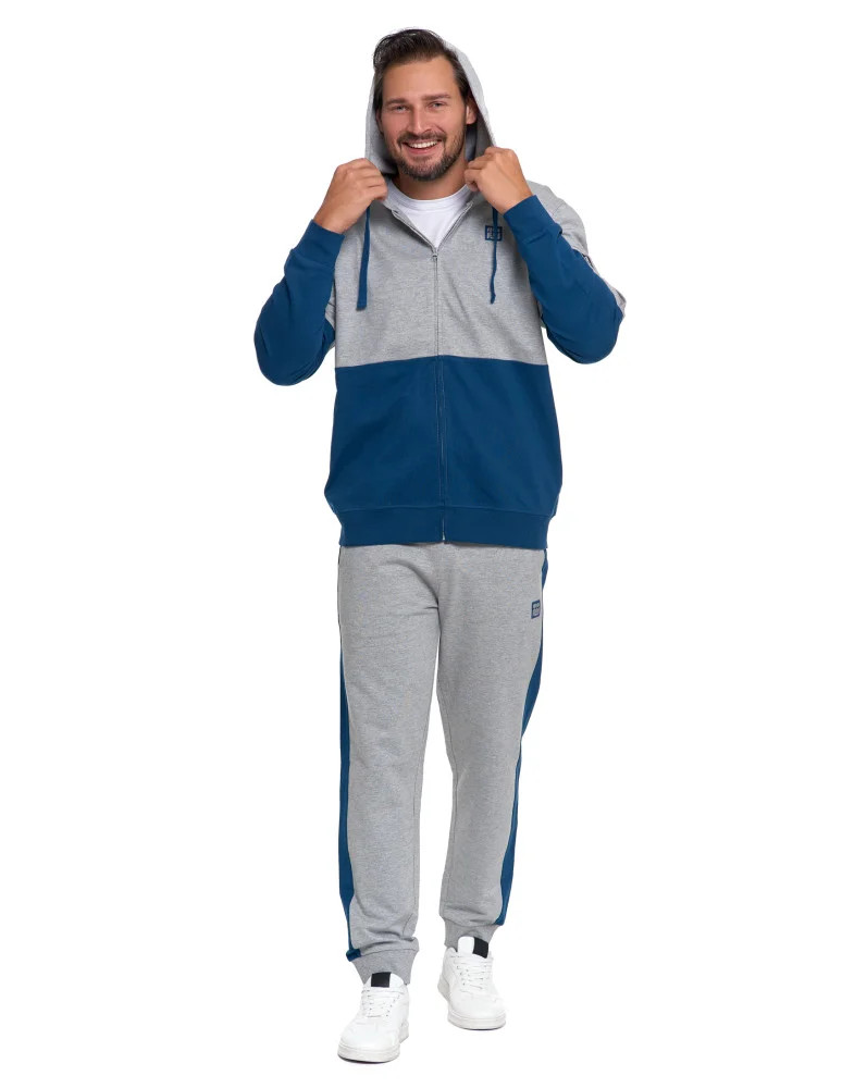 Strona główna » Odzież męska » Bluzy » BLUZA męska z kapturem na zamek DWUKOLOROWA szaro-niebieska MORAJ