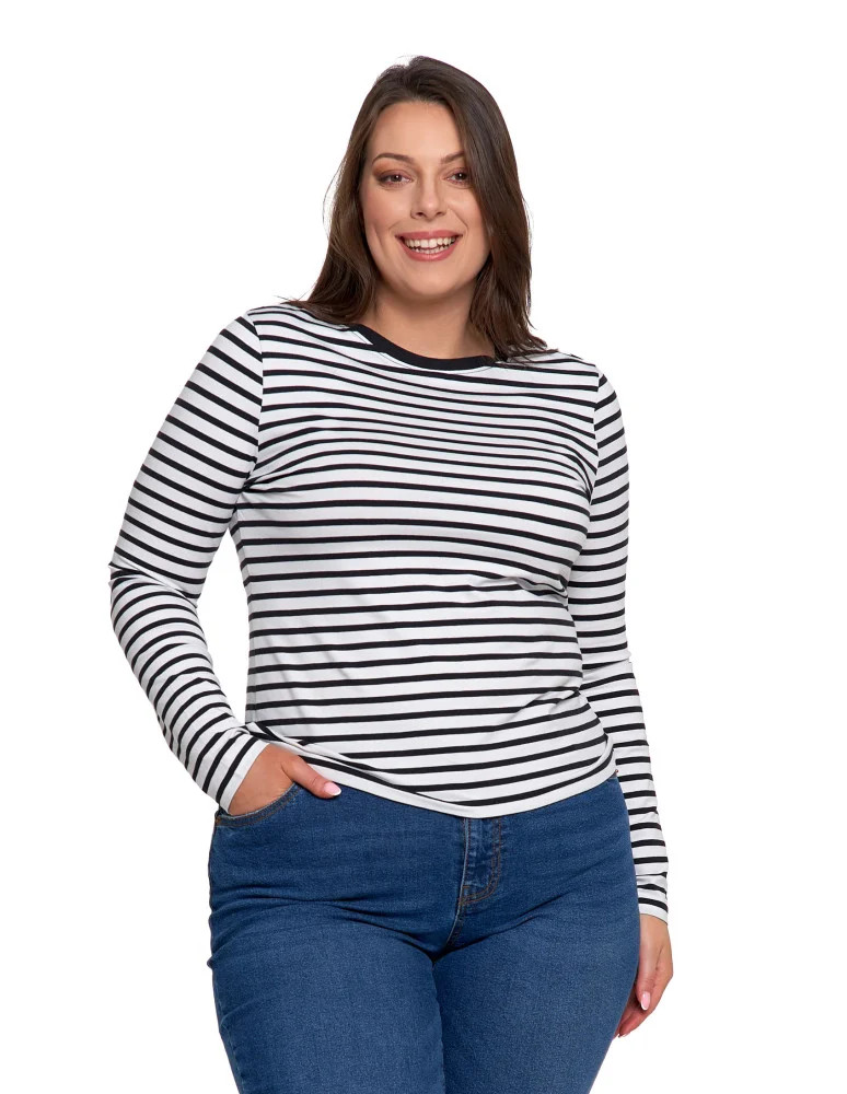 BLUZKA damska w PASKI BAWEŁNIANA, długi rękaw MORAJ