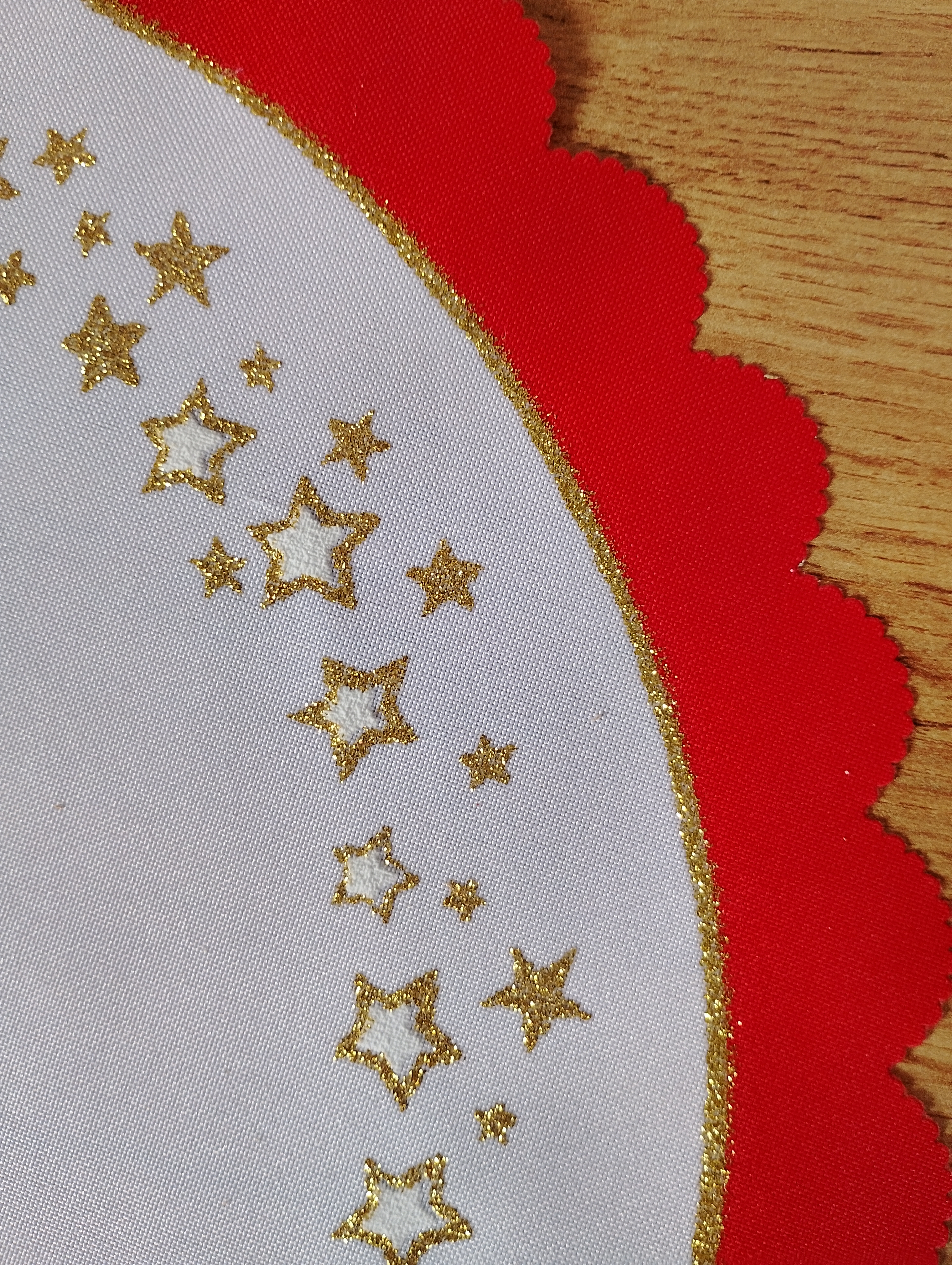 • W górnej części serwetki znajduje się półokrąg z drobnych złotych gwiazdek, który tworzy efekt delikatnej, świątecznej aureoli.