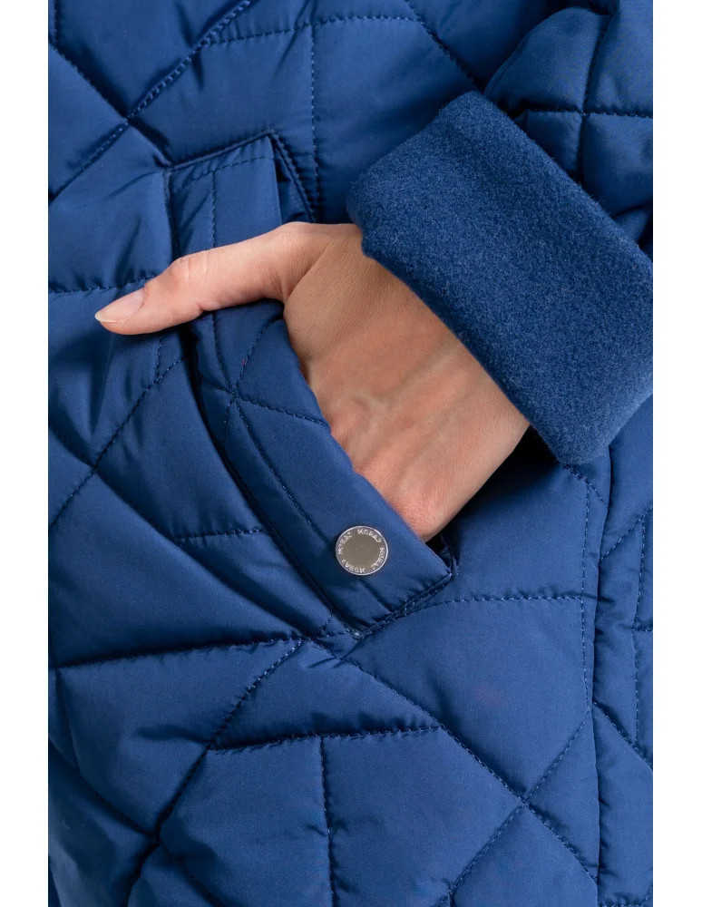 GRANATOWA kurtka DAMSKA pikowana,mankiety z polaru kaptur dłuższa MORAJ