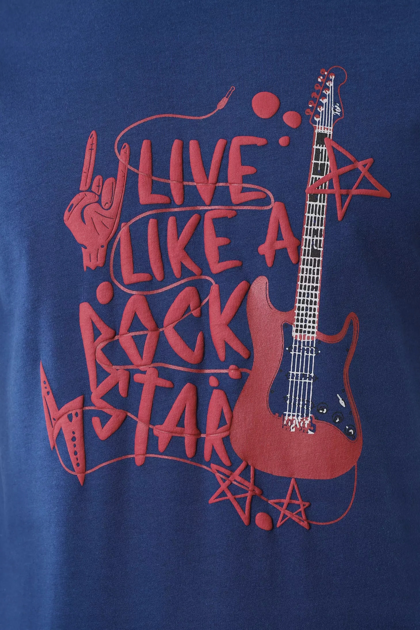 KOSZULKA MĘSKA z nadrukiem gitara BAWEŁNA GRANATOWA MORAJ