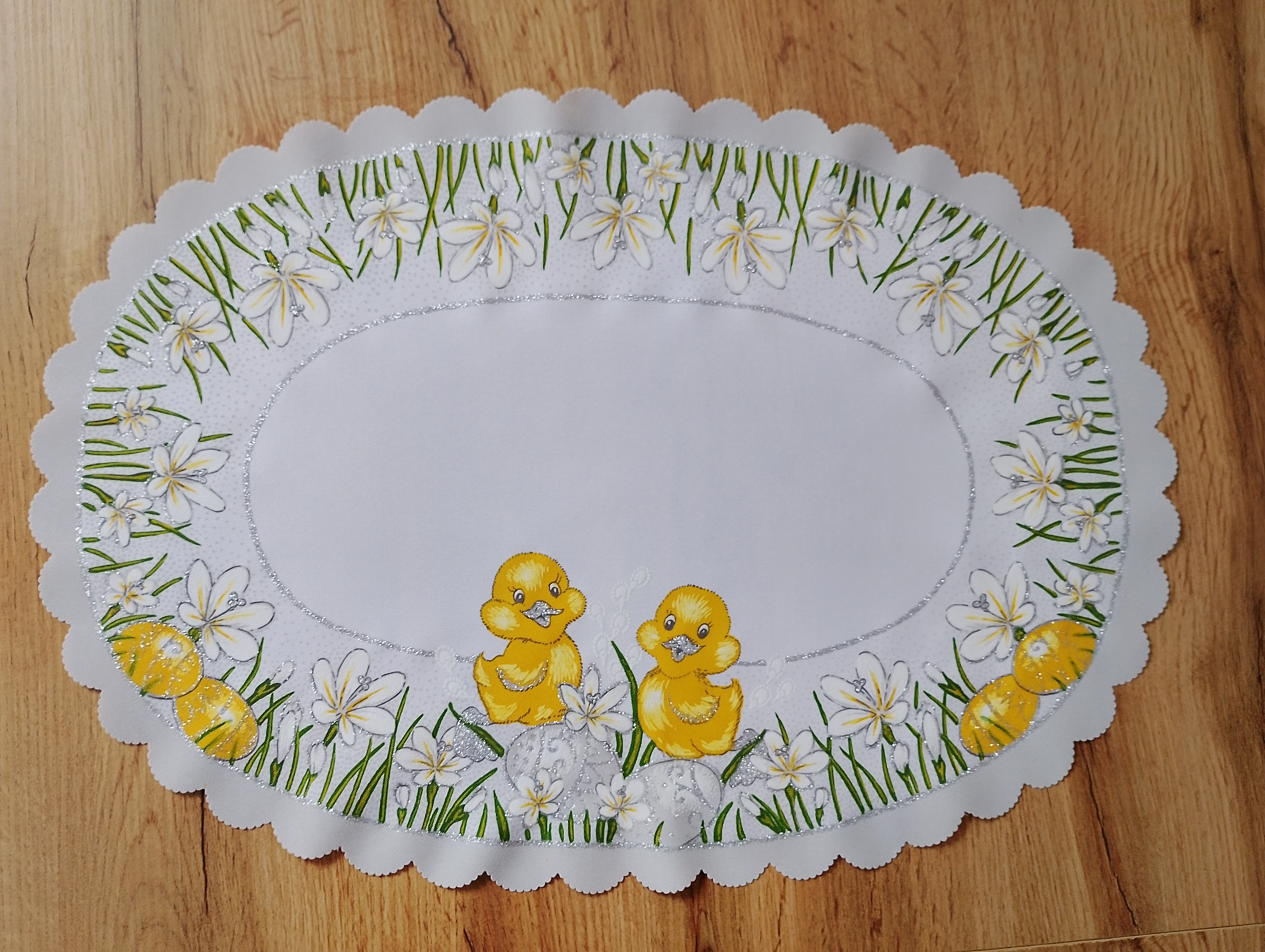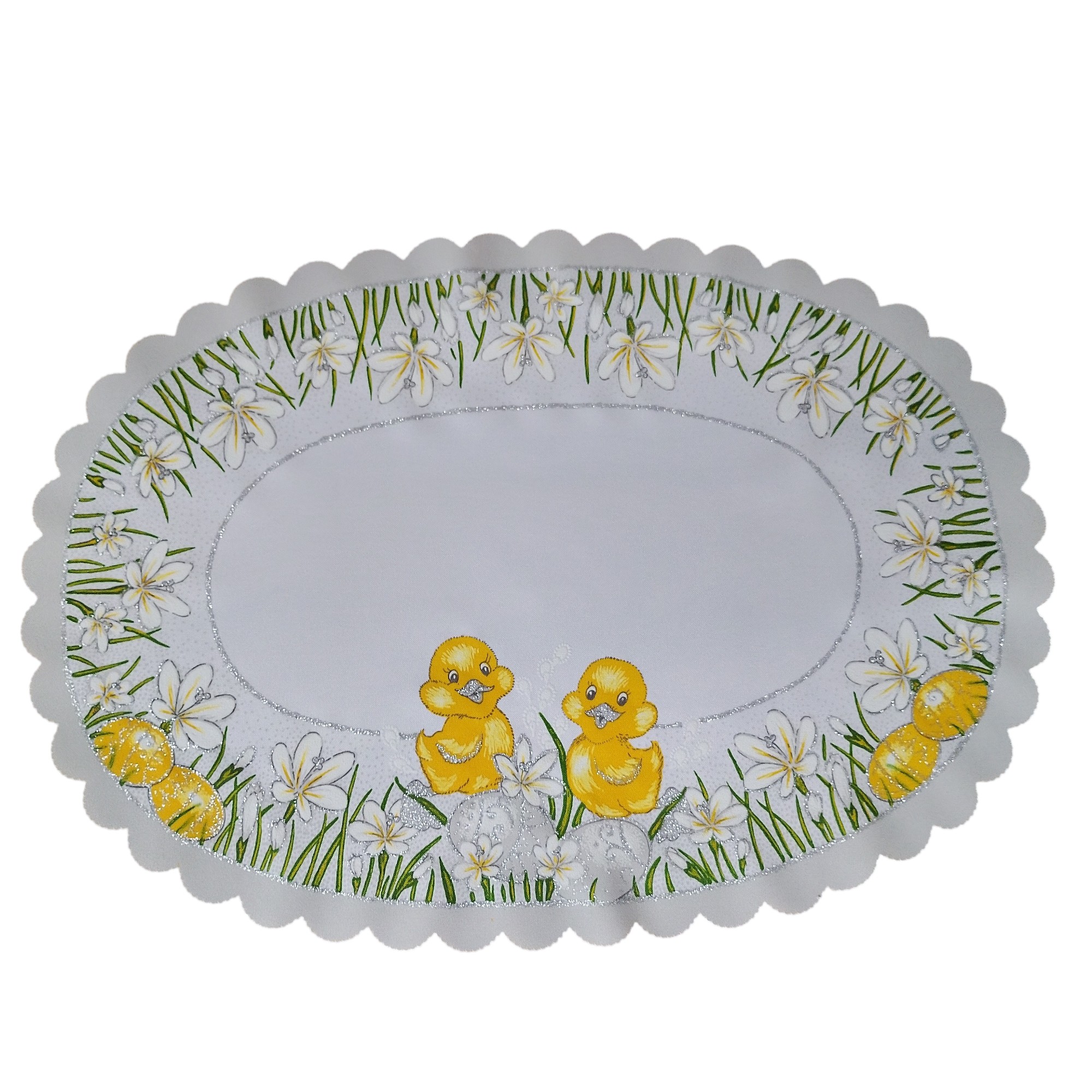 OWALNA serwetka WIELKANOCNA kurczaczki, stokrotki, pisanki 32X48