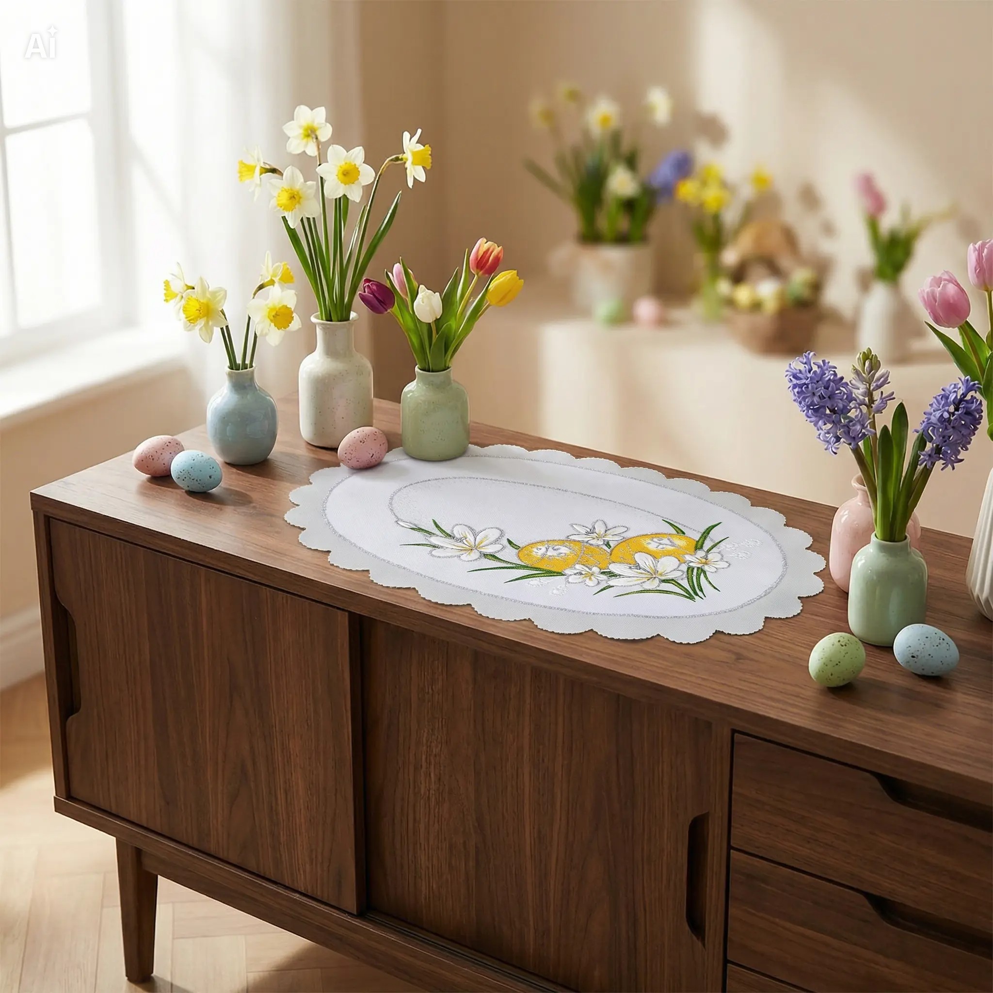 OWALNA serwetka WIELKANOCNA pisanki, stokrotki 20x30