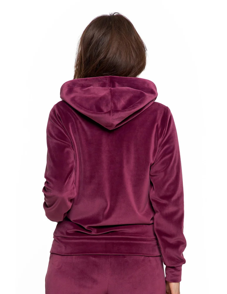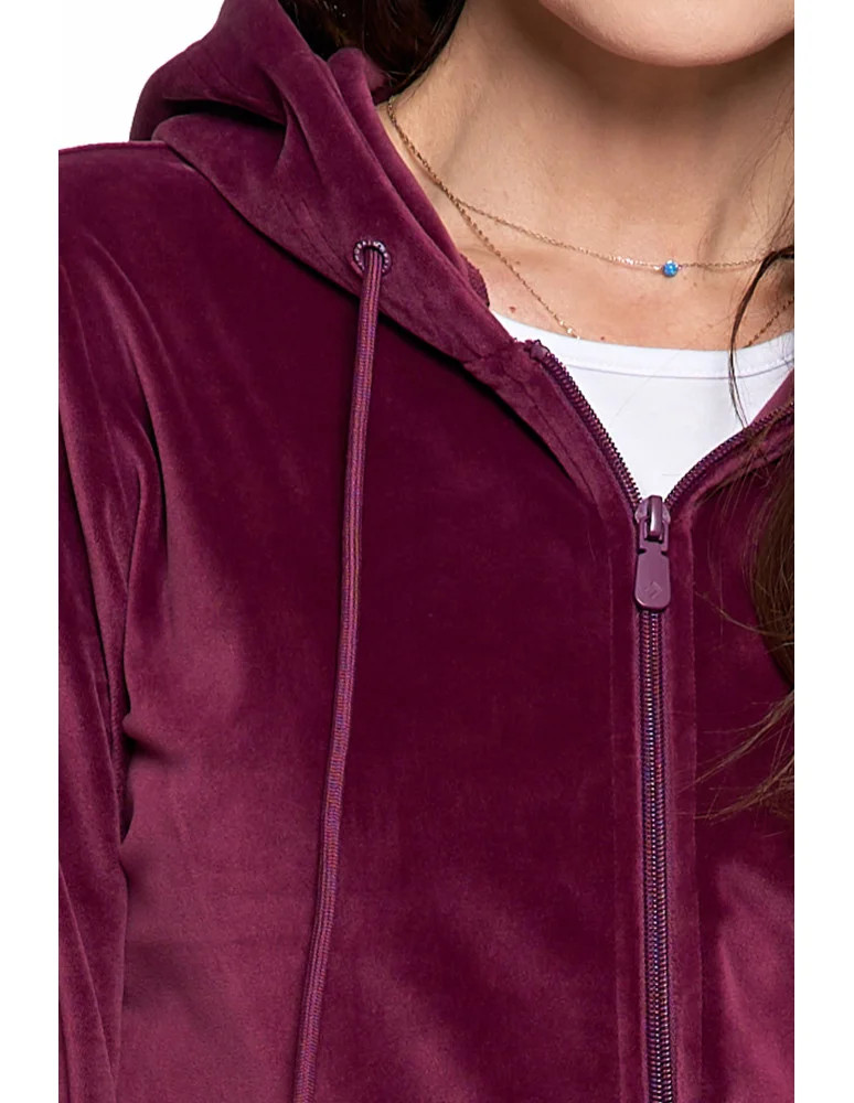 WELUROWA bluza damska na zamek, kaptur, kieszenie FIOLETOWA MORAJ