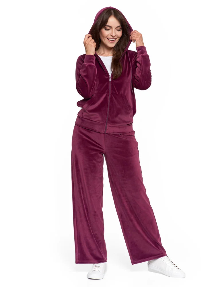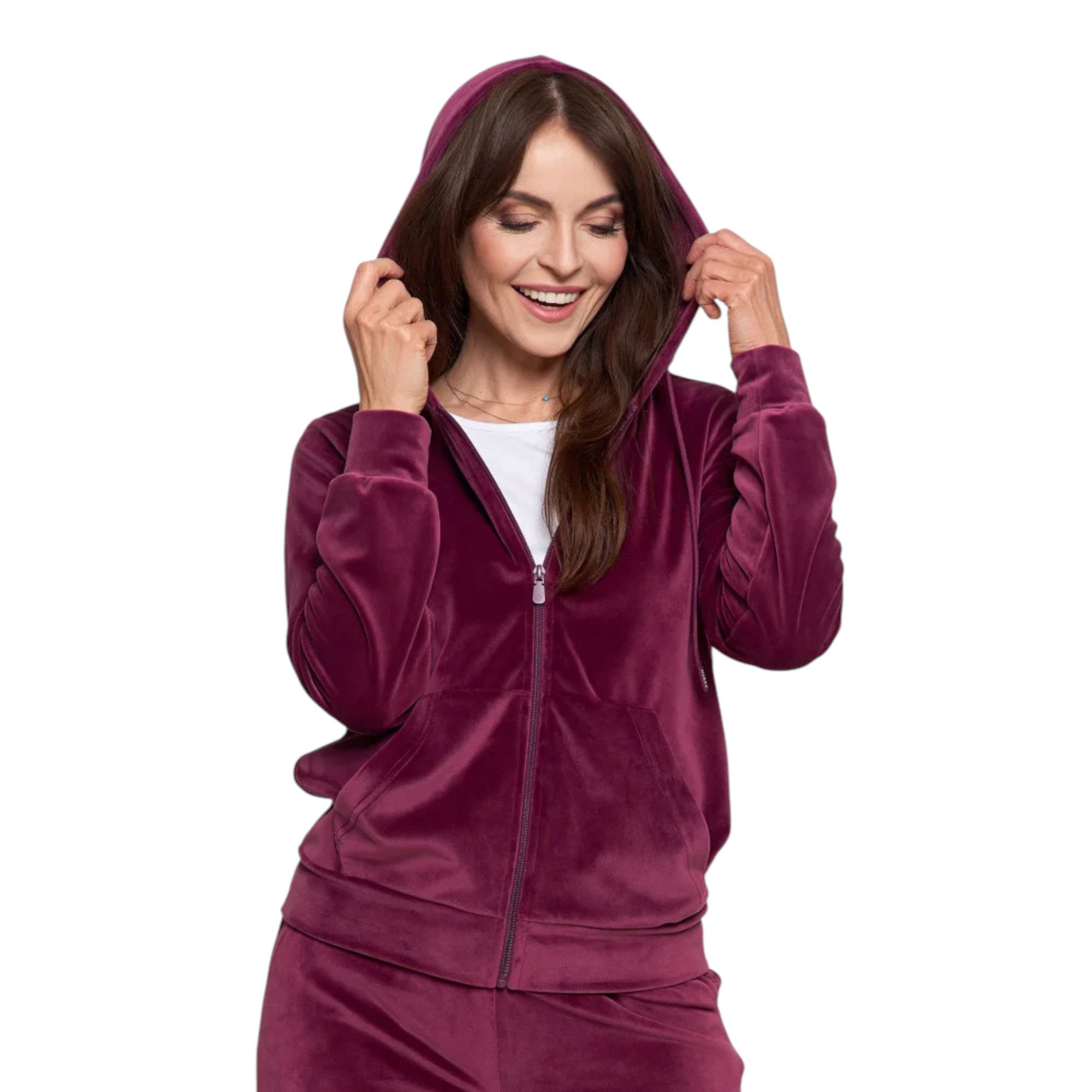 Strona główna » Odzież damska » Odzież sportowa » WELUROWA bluza damska na zamek, kaptur, kieszenie FIOLETOWA MORAJ
