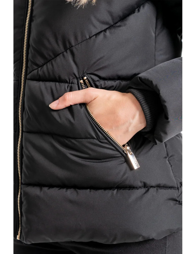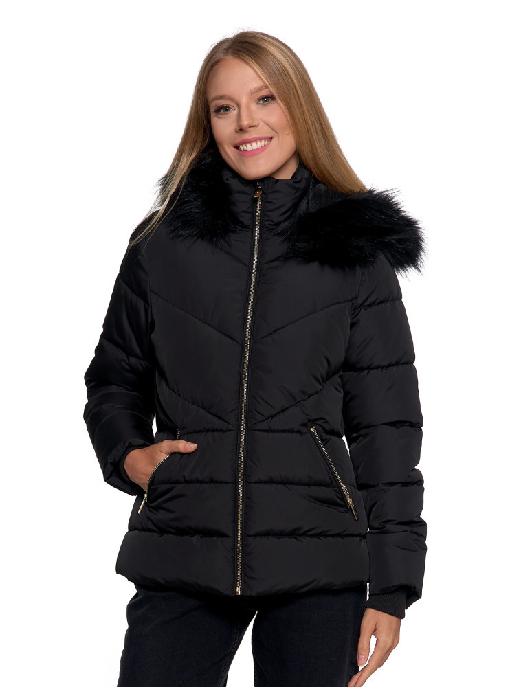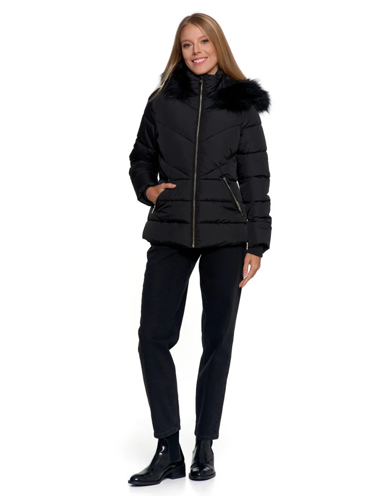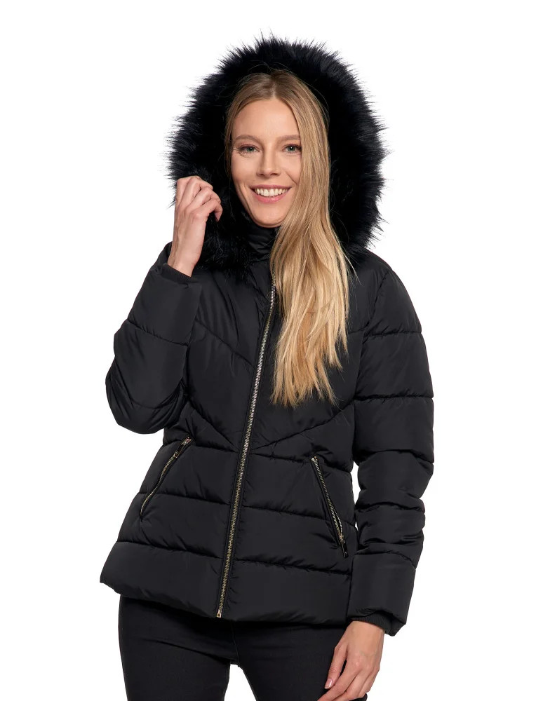 Strona główna » Odzież damska » Kurtki » ZIMOWA kurtka CZARNA damska, krótka z futerkiem, pikowana MORAJ